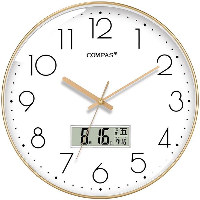 康巴丝(Compas)挂钟客厅钟表石英钟表挂墙时钟日历挂表 C3219AY轻奢金 35cm